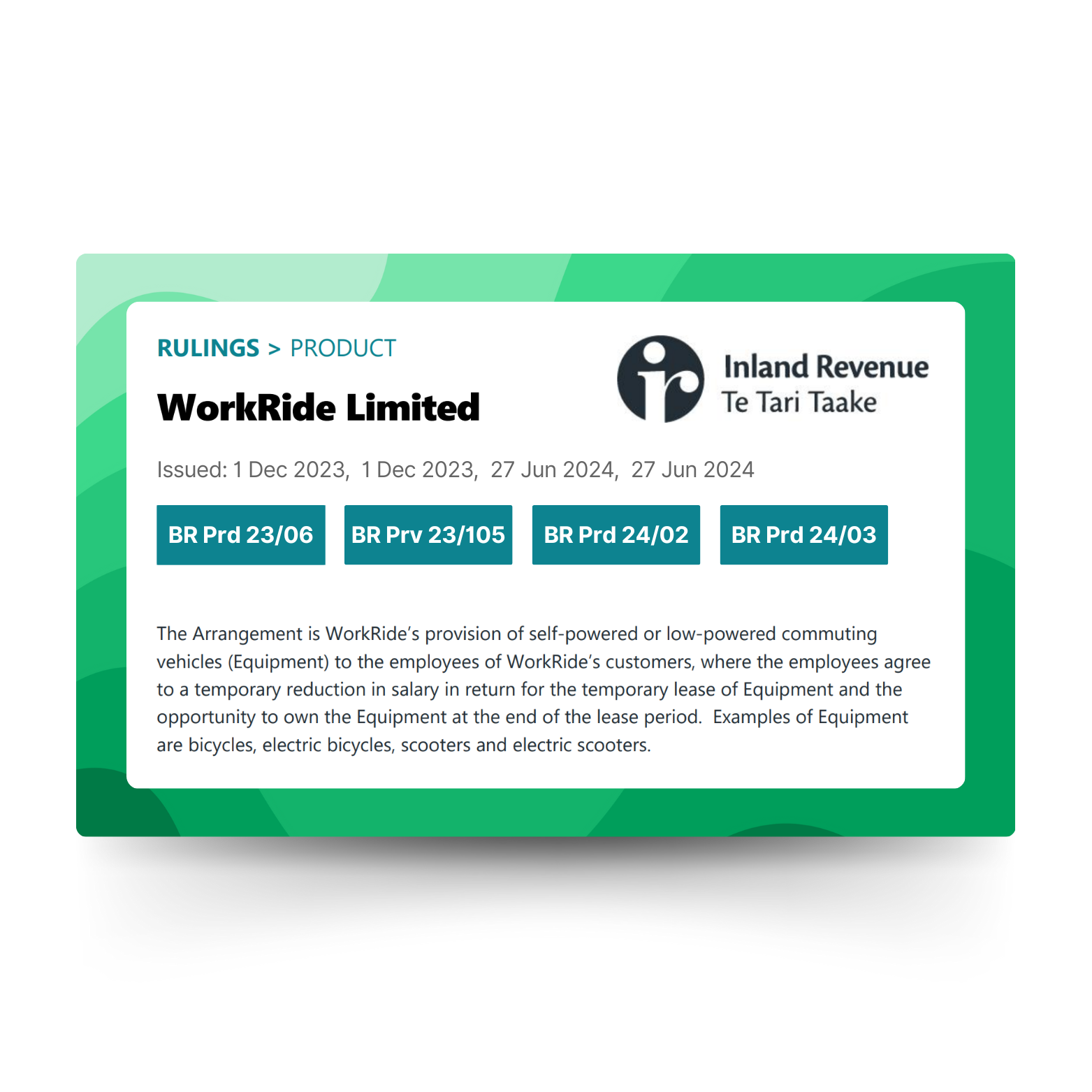 Workride has collaborated with leading councils, top-tier legal and tax consultants, and Inland Revenue, securing approval via 4 binding rulings. As NZ’s original, leading, & trusted provider by almost 1500 organisations, we remove the insurmountable employer risks, compliance challenges, and administrative burdens, allowing businesses to confidently offer this benefit without the associated risk.